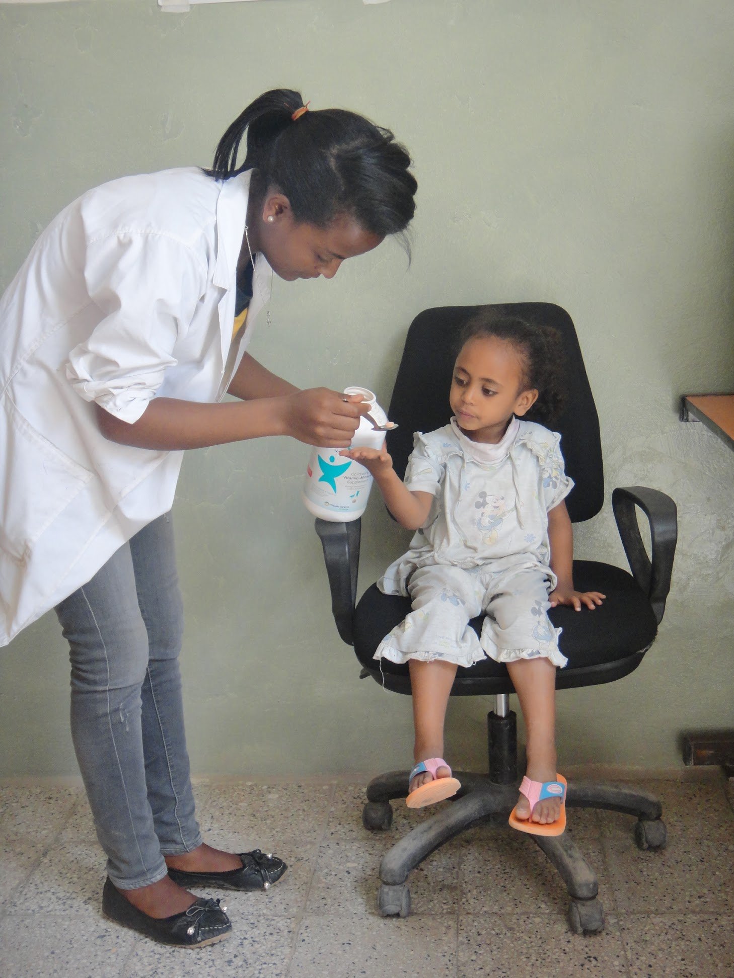 Supplemental child nutrition provides much-needed additional calories, protein, and micronutrients for malnourished children under-five, providing milk, oil, millet, and eggs for all the children in the most impoverished families attending our clinics in Zeway and Mekele. Ready-to-use therapeutic foods such as Plumpy’Nut are available to the most undernourished.